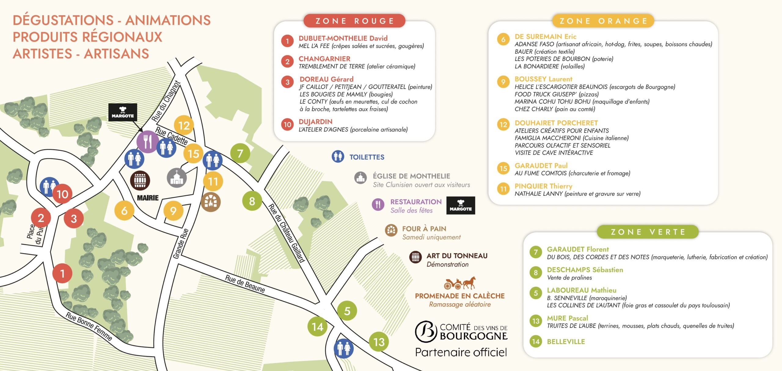 Nous espérons que vous trouverez votre bonheur pendant ce week-end festif : vins blancs, vins rouges, artisanat, restauration, animations pour petits et grands… sans oublier la tombola, à ne surtout pas manquer.